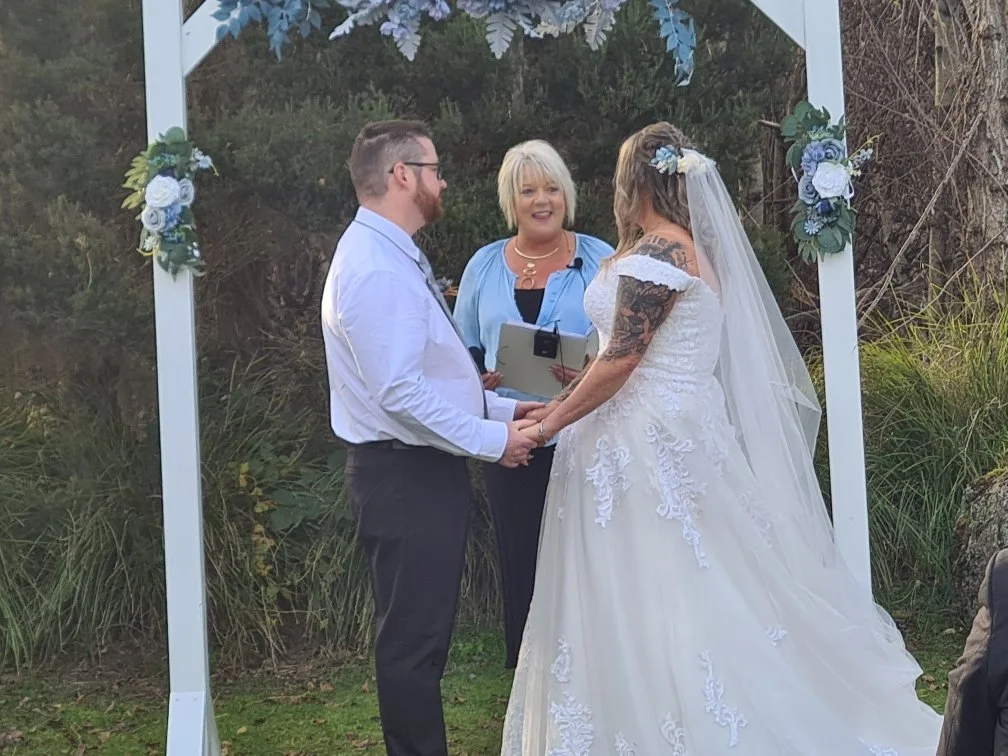 Not only did she suffer through numerous Microsoft teams and zoom chats as we were interstate, but she was able to banter and tease my new husband with great skill and down to earth to truly get to know us and draft our ceremony. Carol put together a unique ceremony that completely captured us as a couple and was an incredible start to our marriage. Carol was adaptable, incredibly well organized, especially calm, very professional, and well spoken on our wedding day.